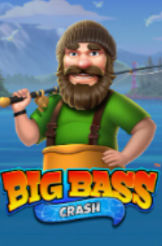 Big Bass Crash is a fishing-themed slot or arcade game featuring a rugged fisherman. Players likely cast their lines in hopes of reeling in big catches and crashing into high payouts, with vibrant water-based scenery enhancing the experience.