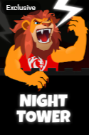 A dramatic, possibly action-themed game featuring a roaring lion in a powerful pose. The title and imagery suggest a high-stakes or night-themed setting, possibly involving battles or challenges in a towering structure.
